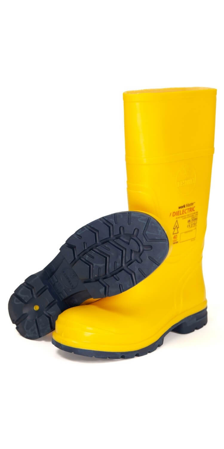 Botte diélectrique pour l'isolation électrique, avec renfort en acier aux orteils et semelle en caoutchouc vulcanisé, pour une très grande résistance au glissement. La botte diélectrique Respirex permet d’intervenir en milieu soumis à haute tension électrique allant jusqu’à 17kV, chaque botte étant testée à 20kV, test CC à 40kV en option (Classe 1).